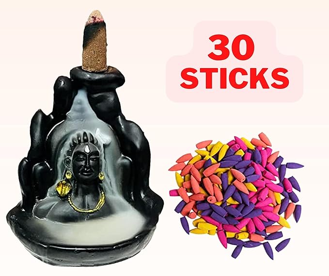- In this package include - 1 Piece of Lord Shiva Adiyogi Smoke Fountain Incense Holder with 10 Units of Backflow Fragrance Incense Cones