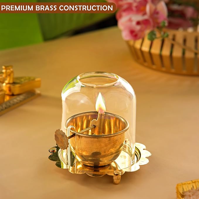 Premium Brass Akhand Deep with Adjustable Bati – Long-Lasting Diya for Puja & Festivals